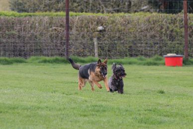When you come to your first session, I would advise you to be 5 minutes early and your dog be first into the field, as they have a tendency to run like a mob to the gate to greet new dogs and it can be overwhelming for some dogs.